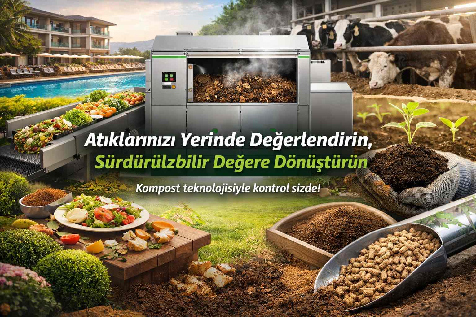 Yerinde kompostlama, organik atıkların taşıma ve bertaraf maliyetlerini düşürürken, atıkları kompost gübre veya yem hammaddesine dönüştürerek işletmelere operasyonel rahatlık ve sürdürülebilir değer sağlar. Doğru kapasite ve doğru kullanım senaryosu ile bu yaklaşım uzun vadeli fayda üretir.